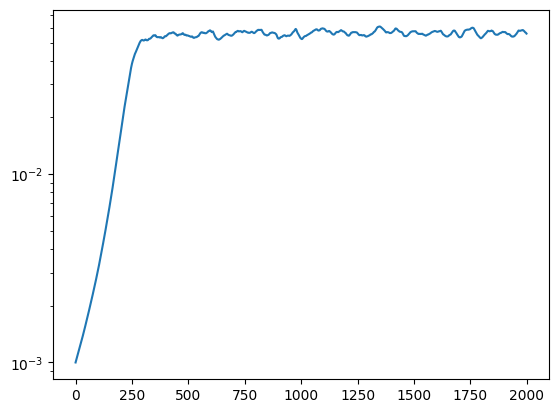 plt.semilogy(np.exp(learning_rates))